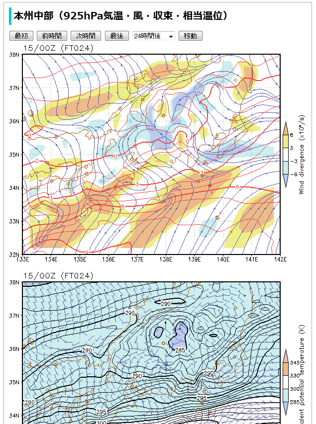 気温・風の収束発散・相当温位の図を追加しました。