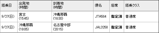 ようやく確定 今までこつこつ貯めてきた航空会社のマイル、 下地島空港の空の日イベントのために一気に放出します! 最後まで未確定だったのが、27日の宮古→那覇。 とりあえずもう1本前の便を押さえていたのですが、今日になってようやく希望の便に空きが出て、 めでたく確定となりました。(^^) 前回、7月のクラシックジャンボ飛来のときは豪雨に見舞われてしまったので、 今回こそは安定した天気になることを祈っています・・・。