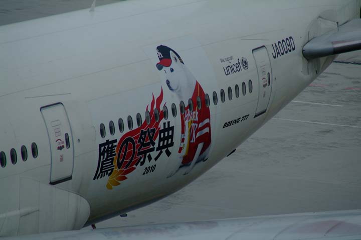 JALのホークスジェット。というより、ソフトバンクのお父さんジェットといったほうが正しいかも。