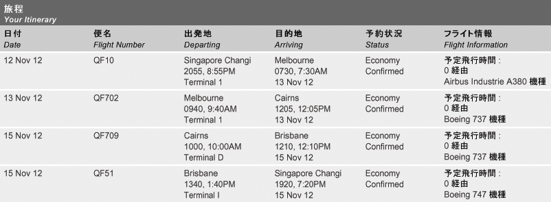 ちなみに、日本~ケアンズ、日本~シンガポール、シンガポール~ケアンズは