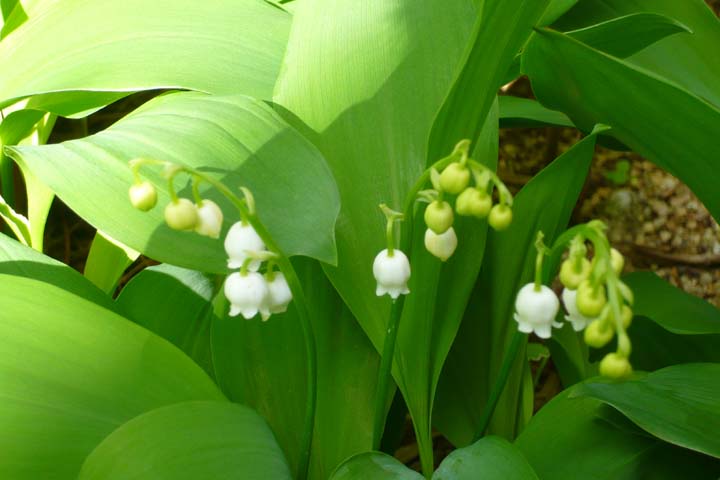 で、今日の昼過ぎ玄関脇を歩いていると、スズランの花が咲いているのを発見。