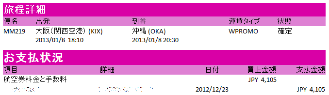 Xmas present for me. 一年間頑張った自分にささやかながらご褒美を… 関空までの移動には18きっぷを使うので、トータル1万円強で沖縄往復できる計算に。 いい時代になったもんです。(^^;